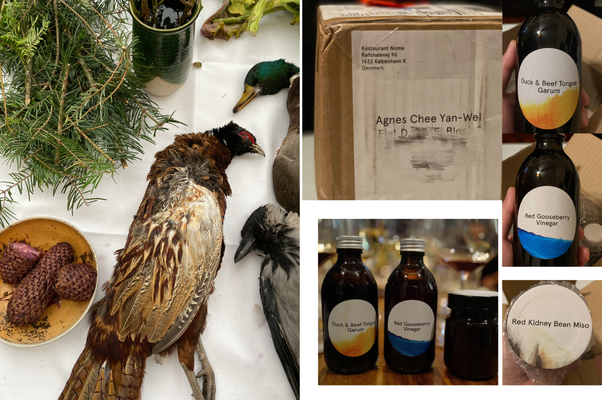 (左圖)上午是發酵工作坊,下午是食材工作坊,當時展示的是野味季的所有原材料,視覺效果震撼。(右圖)服務周到的 Noma,把每個人的發酵品養好後,再快遞到你家。在香港收到這個 Noma 的快遞包裹,高興極了!