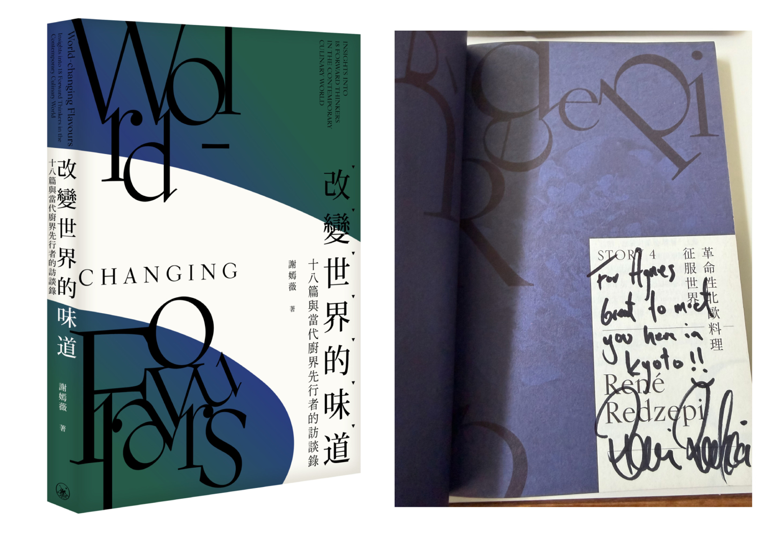 我的書《改變世界的味道》,René 在我寫他那篇文章的開頁上簽名。