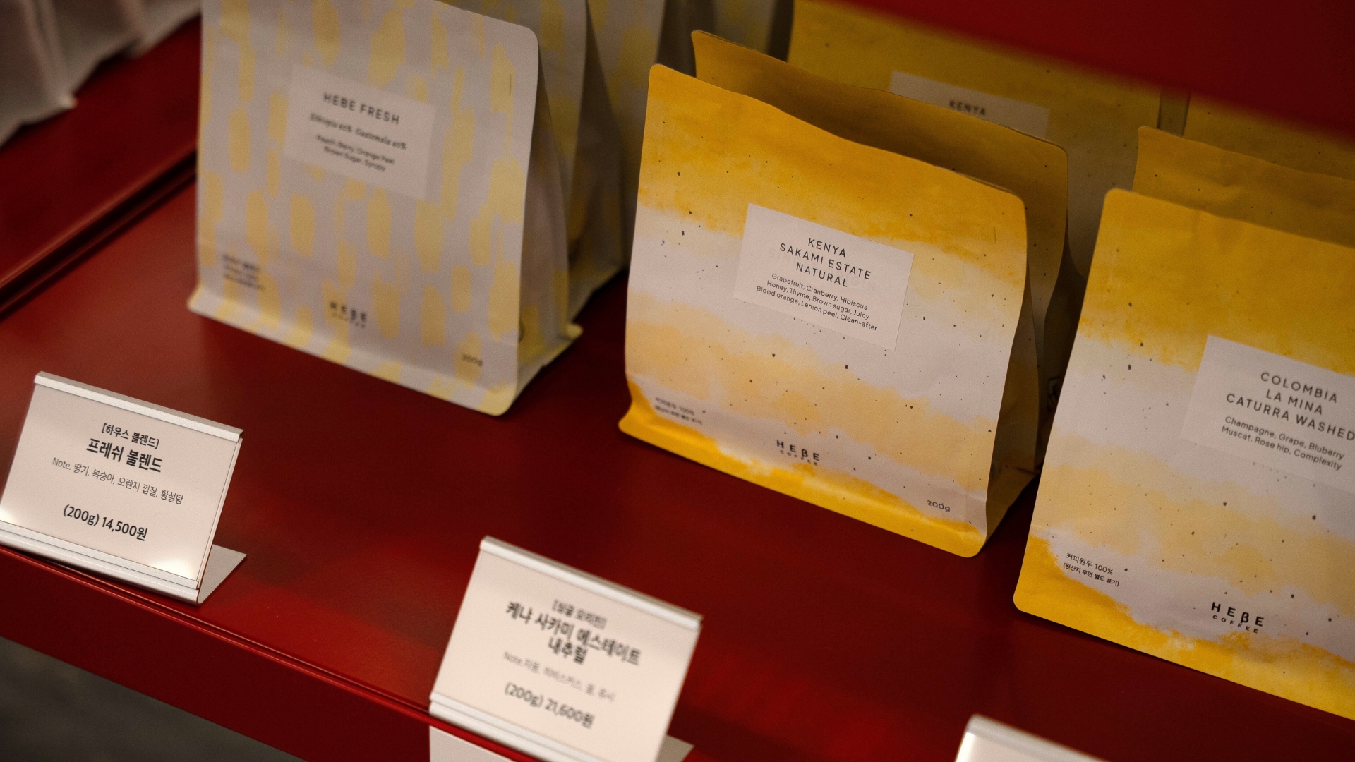 커피가 가진 본연의 단맛을 가장 중시하는 스페셜티 커피 브랜드 ‘헤베 커피(HEBE Coffee)’의 원두들