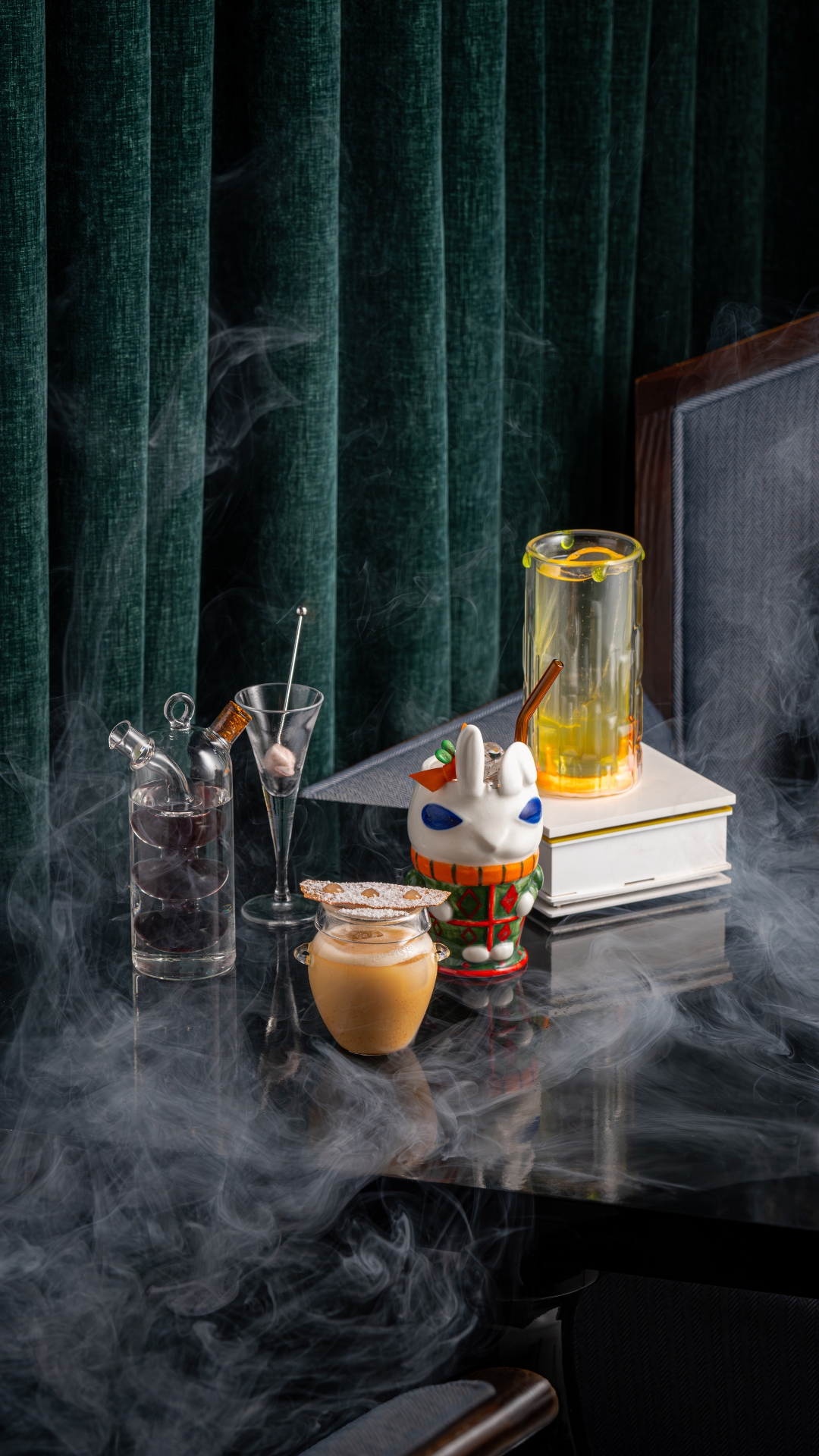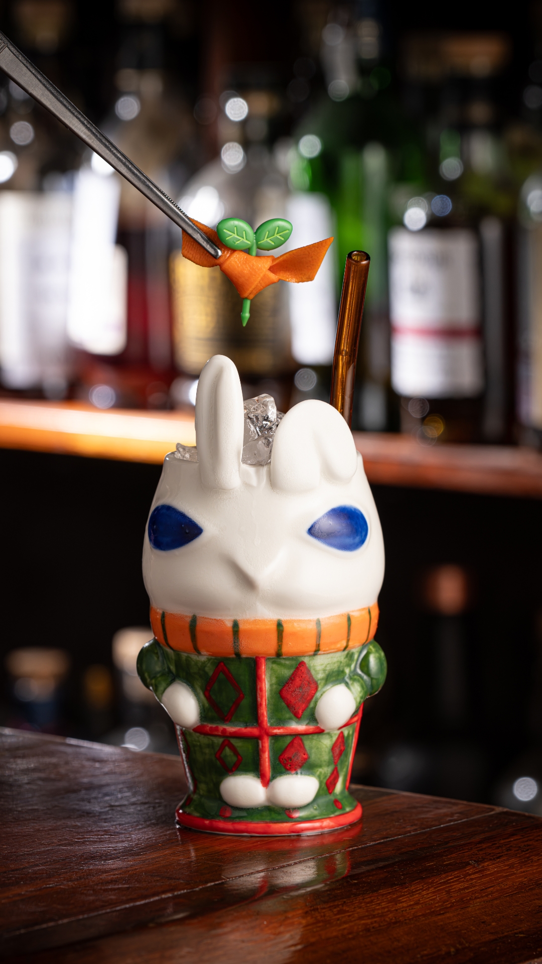 기물을 잘 사용한 대표적인 예는 앨리스의 시그니처 칵테일이자 심볼인 ‘히피티 호피티(Hippity Hoppity)’다. 토끼 모양의 머그에 매 시즌 다른 칵테일을 담아 ‘시간의 변주’를 표현한다. 특히 이번 시즌엔 루콜라와 딜, 파슬리를 사용해 복합적인 허브 향의 여운을 남기도록 했다.