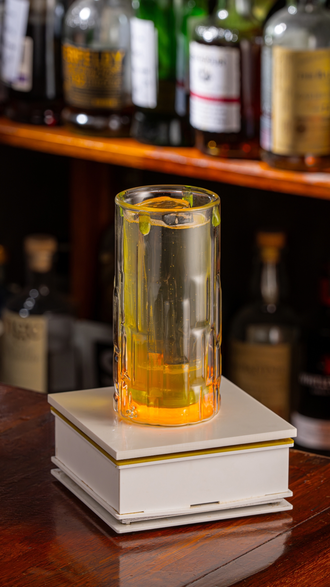 글라스에 손이 닿는 순간, 칵테일에 흐르는 전류를 볼 수 있는 ‘E=mc²’
