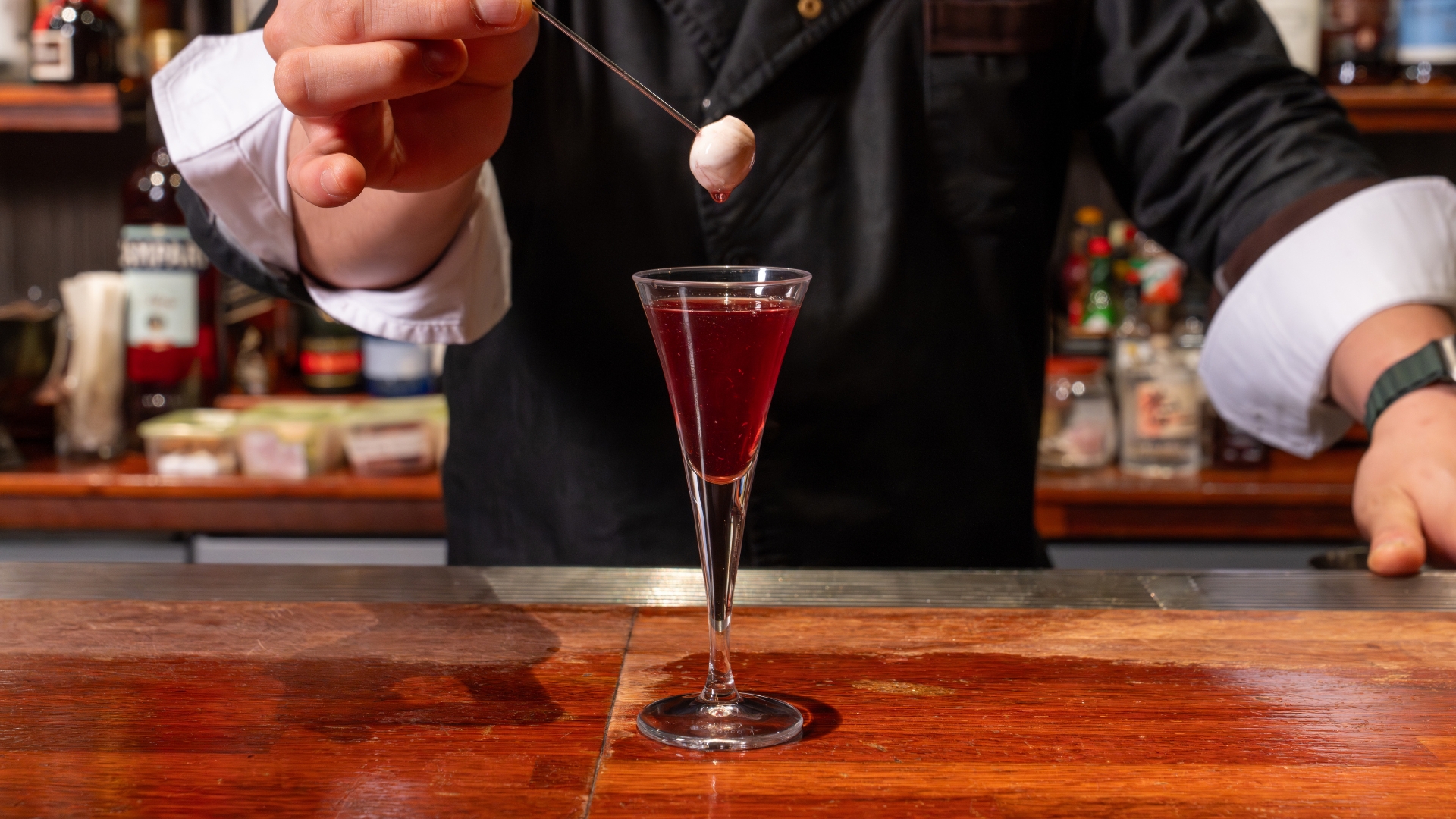 그의 칵테일은 언제나 이야기로 시작해 맛으로 끝난다. ‘된장 버터 칵테일’은 백종원 셰프가 춘장을 볶는 장면에서 영감을 받아, 브라운 버터에 된장을 튀겨 감칠맛을 입힌 술이다. 고소함과 염도의 경계 위에서 서서히 녹아내리는 섬세함이 특히 일품이다. 한편 지난 시즌의 ‘쌈 칵테일’은 깻잎과 상추, 아보카도를 소주와 섞고 김치 타임 파우더로 마무리해, 한국적인 식문화의 구조를 술로 제대로 번역해냈다.