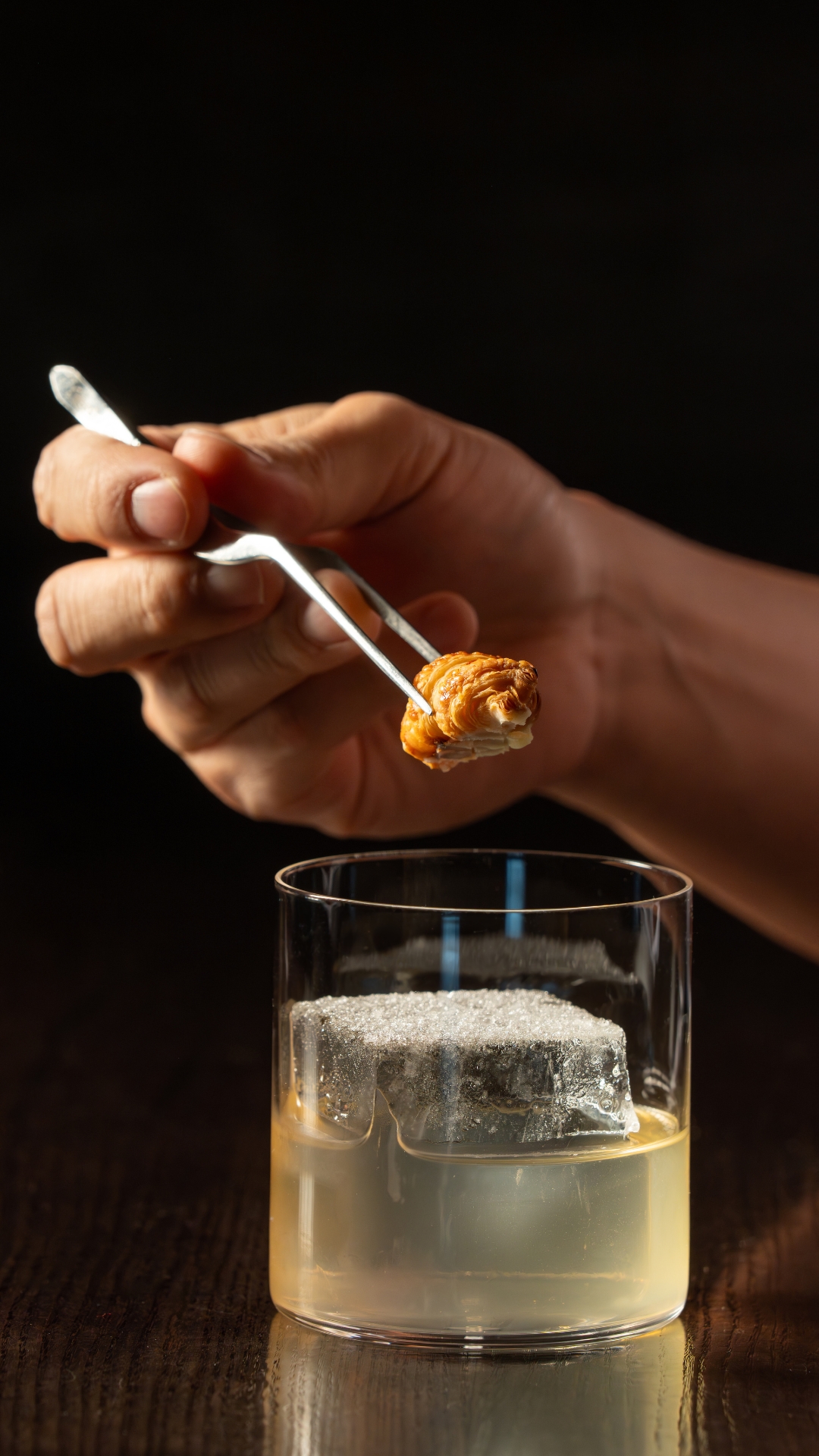칵테일에 들어가는 재료 하나하나를 통해서도 제스트만의 건강한 맛을 경험할 수 있다. 이 대표적인 예가 크루아상이 올라간 칵테일인 ‘라스트피스(Last piece)’다. 럼 베이스에 바게트의 끝 부분과 파인애플 껍질을 재활용해 만들었다.