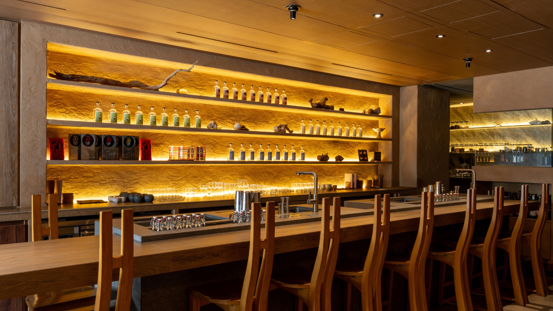 백 바에 음료를 두는 대신 흙과 돌, 나무 등 자연의 소재를 돋보이게 해, 인테리어에서도 지속 가능함의 가치를 담았다.