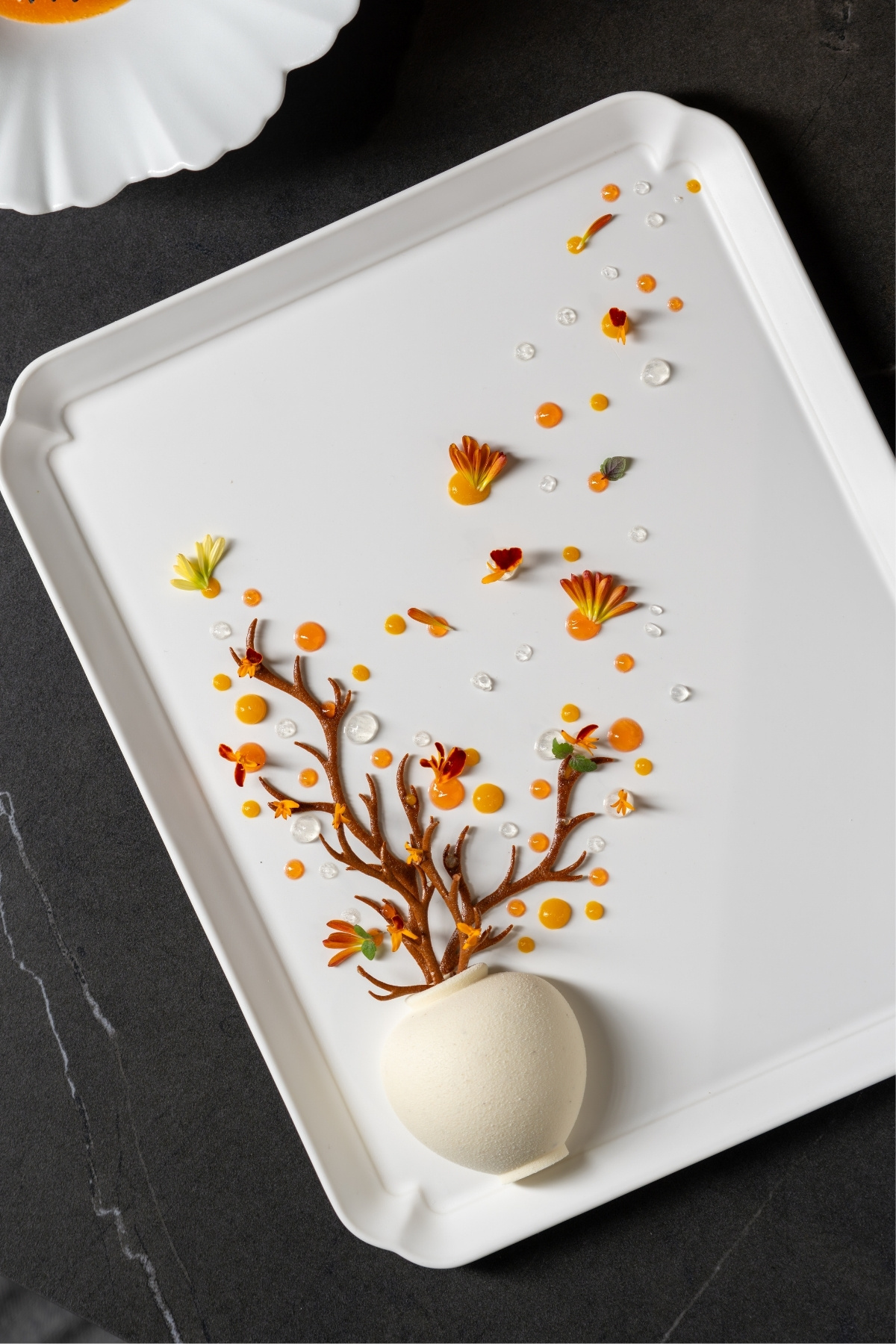 홀그레인 머스터드 알갱이를 활용해 캐비어처럼 연출하고 또 식감을 살리면서, 홍시의 감칠맛과 적절한 단맛을 더해 계절의 맛을 표출하는 ‘홍시 설화’