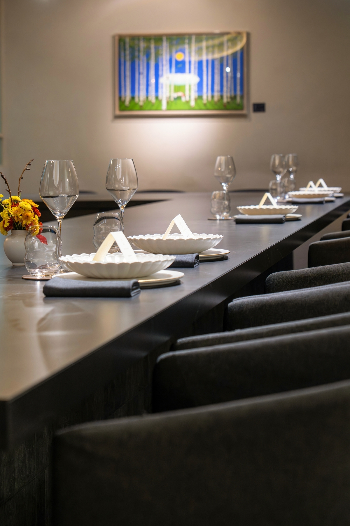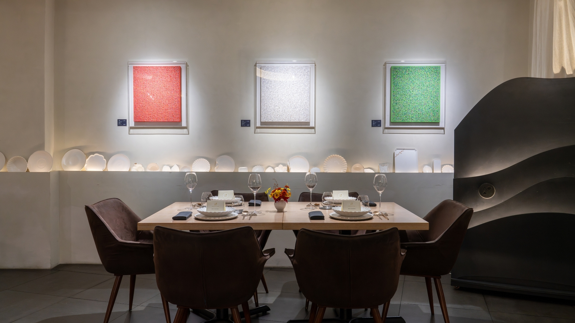 테이블 위와 주변에서 볼 수 있는 ‘소울’의 기물은 레스토랑의 철학, 한식과 한국 문화에 대한 존중을 또렷이 드러낸다.