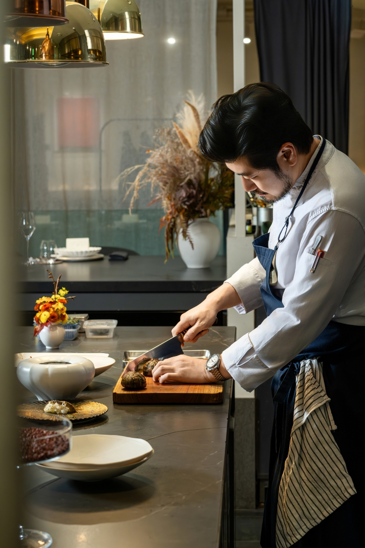 오픈 키친 형태인 ‘소울’의 바 테이블. 디시가 키친에서 테이블로 전해지기까지 두 셰프의 정성 어린 손길을 생생히 경험할 수 있다.