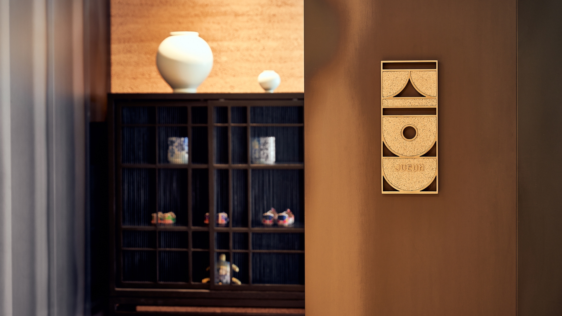 그는 그릇과 식기 등의 공예품, 공간의 디자인도 한식의 유산을 잇는 중요한 문화적 요소라고 강조한다. “한국은 정말 뛰어난 도예 역사가 있고, 공예품도 다양해요. 저희 팀은 지방에 가면 식재료뿐 아니라 꼭 그릇이나 기물을 만드는 장인의 공방에도 들러요. 작가님의 나이나 명성보다, 저희와 맞는 분을 직접 찾아 나서는 것이 더 중요하죠.” 이렇게 셰프는 분청, 옹기, 청자, 백자, 흑자, 청화백자, 목기, 유기까지 거의 모든 범주의 기물을 활용하며, 이 다양성을 코스 안에서 적극적으로 드러낸다. 홀 벽면을 채운 미디어 아트는 국립중앙박물관의 오픈 소스를 활용한 수묵화 영상이다. 룸의 벽면은 산수화를 모티프로 한 장응복 디자이너의 벽지를 이용하며, 곳곳에 규방의 소품과 크고 작은 공예품이 가득하다. 주은은 이처럼 음식과 공간, 시각적 요소가 하나의 리듬을 이룬다.