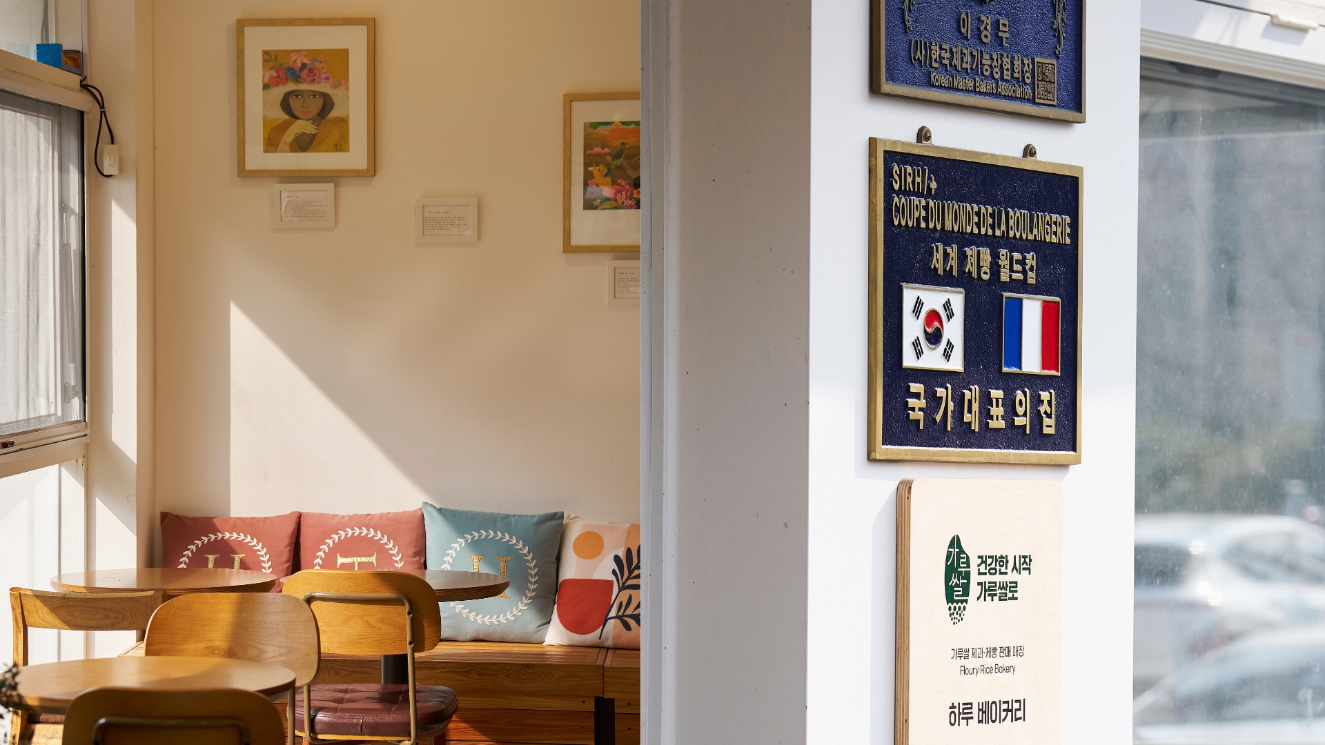 (좌) ‘하루 베이커리’ 내부엔 빵과 음료를 즐길 수 있는 별도의 공간이 마련돼 있다. / (우) 이경무 셰프는 2024년 ‘글로벌 베이커리 월드컵’인 <2024 Coupe du Monde de la Boulangerie>에 한국 국가 대표로 출전해 준우승을 차지했다.