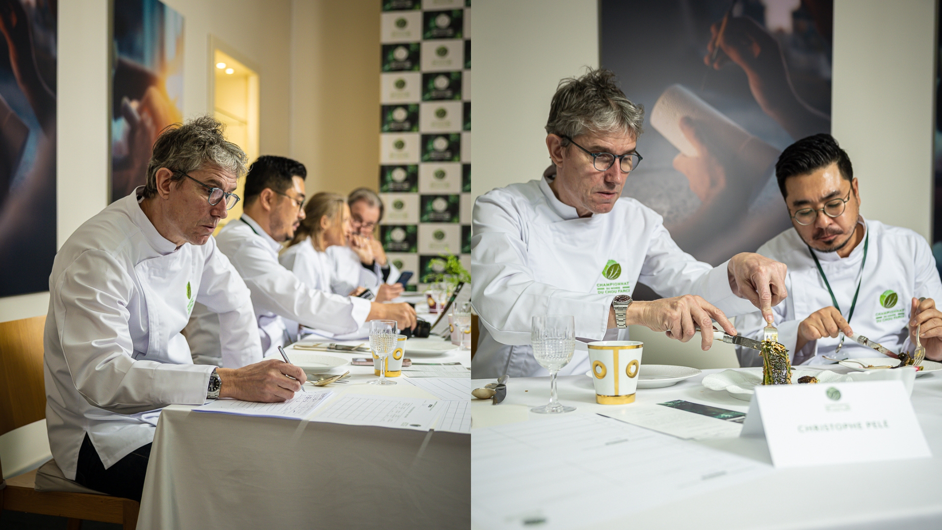 본선 당일 출품작을 심사하고 있는 크리스토프 펠레(Christophe Pelé) 셰프와 ‘팻투바하’ 김범수 대표