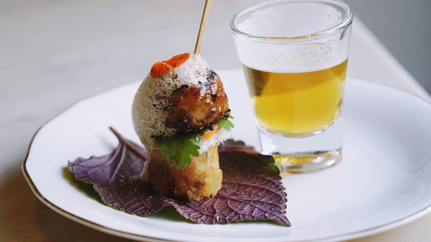 越南法式麵包 Bánh mì 那麼受歡迎,在餐廳裡以可愛的迷你版登場,但是功夫更多。法棍變成酥脆輕盈的薄脆餅,包裹著一片安格斯牛肉,內餡則是濃郁的肉醬。