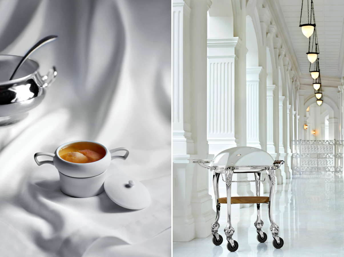 這個烹飪故事當中貫穿著一條鮮明的歷史脈絡──新加坡豐富的歷史、多元文化影響,另一特色是新加坡萊佛士酒店這 139 年的傳奇歷史及相關的傳承,這包括早期宴會廳復興的風味,歷史悠久的用餐儀式,比如在餐桌旁的服務元素,酒店也採用二戰後出土、極具標誌性的銀器奉客。