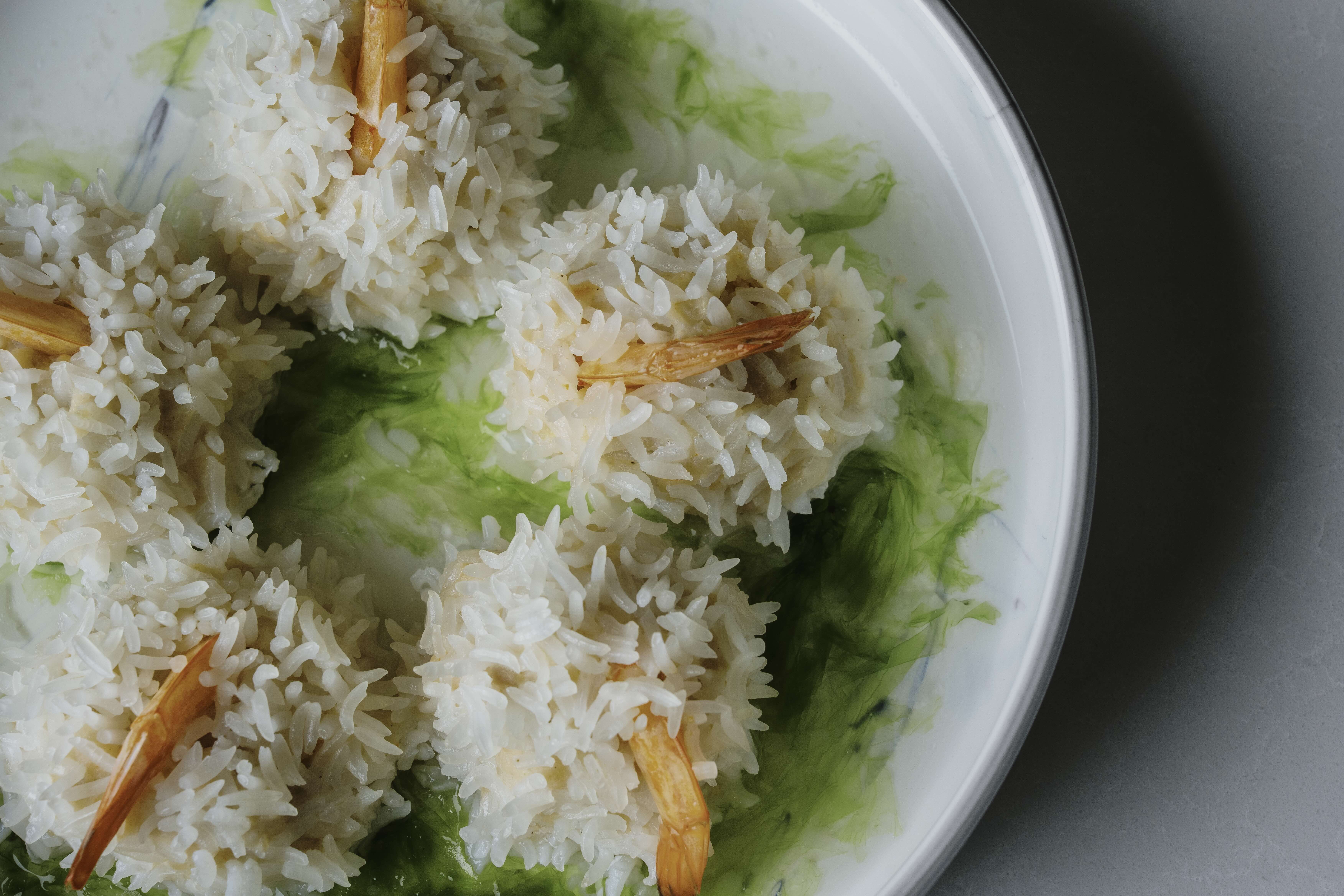 美國茉莉香米在蒸煮後,口感帶有迷人的 Q 彈感,入口有一種在嘴裡輕盈舞動的感覺,成為全新版本的經典珍珠蝦丸。