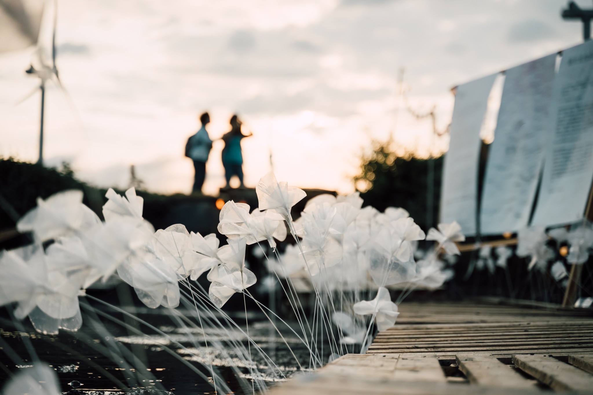 本次餐會除了美味的物產辦桌,尚有五感體驗的裝置藝術。二拾家居以沿海農業覆蓋布料回收後製作成白色海浪般的花朵,地板鋪設灰白蚵殼碎,更收集海線各色氣味。讓賓客吃一頓飯,用嶄新的角度理解了芳苑。