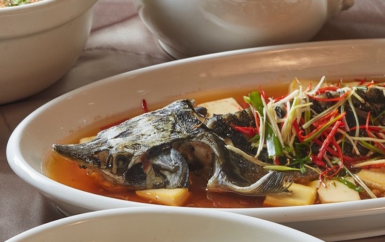 蒸鱘龍魚與本土雜糧豆腐