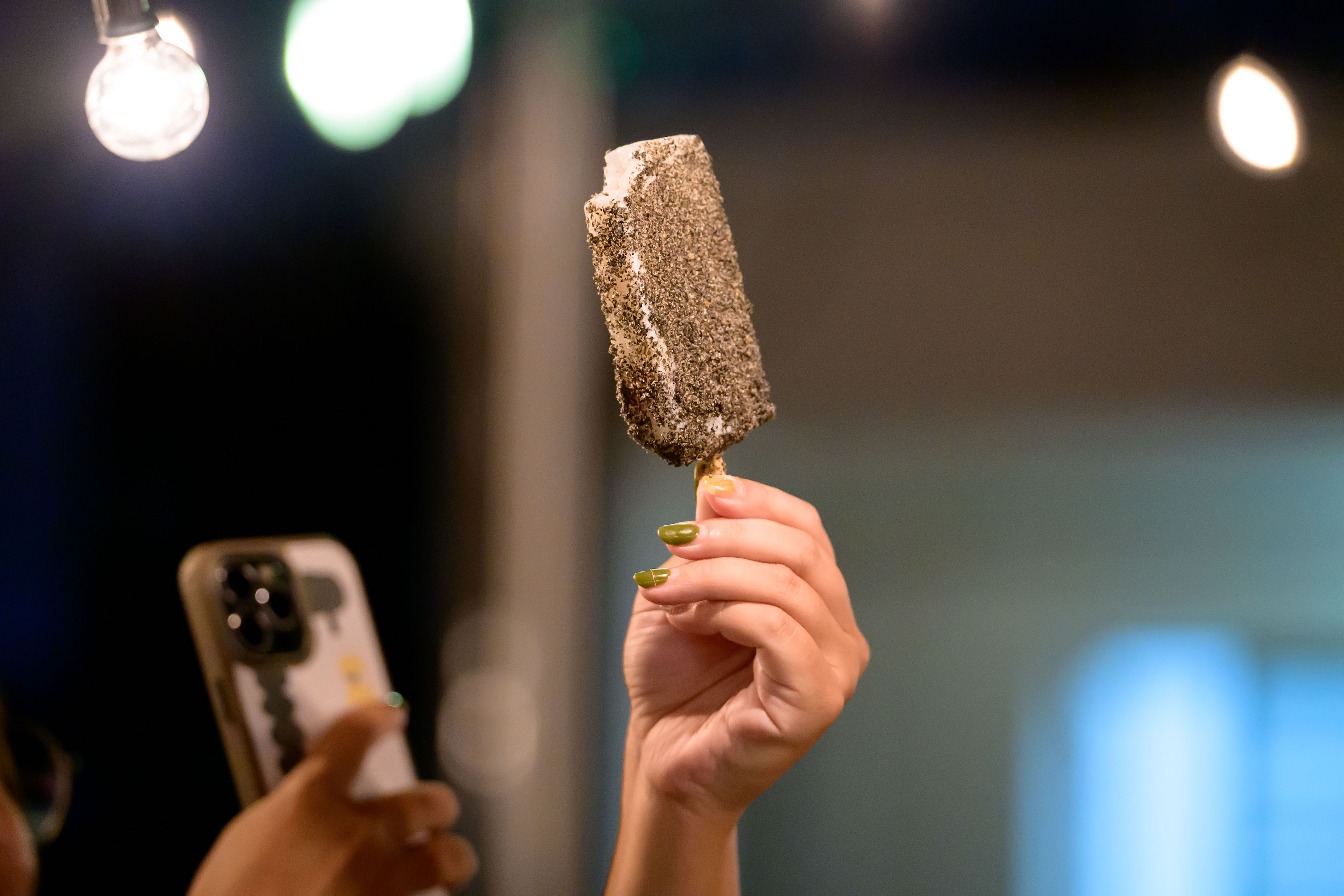 最後一道甜點,是來自芳苑開業超過 70 年的泉芳枝仔冰。生態廚師在當地研發出獨特吃法:在老派四果冰上頭刷上麻油、撒上芝麻粉享用,讓原本樸素的冰棒瞬間滿溢堅果芳香。