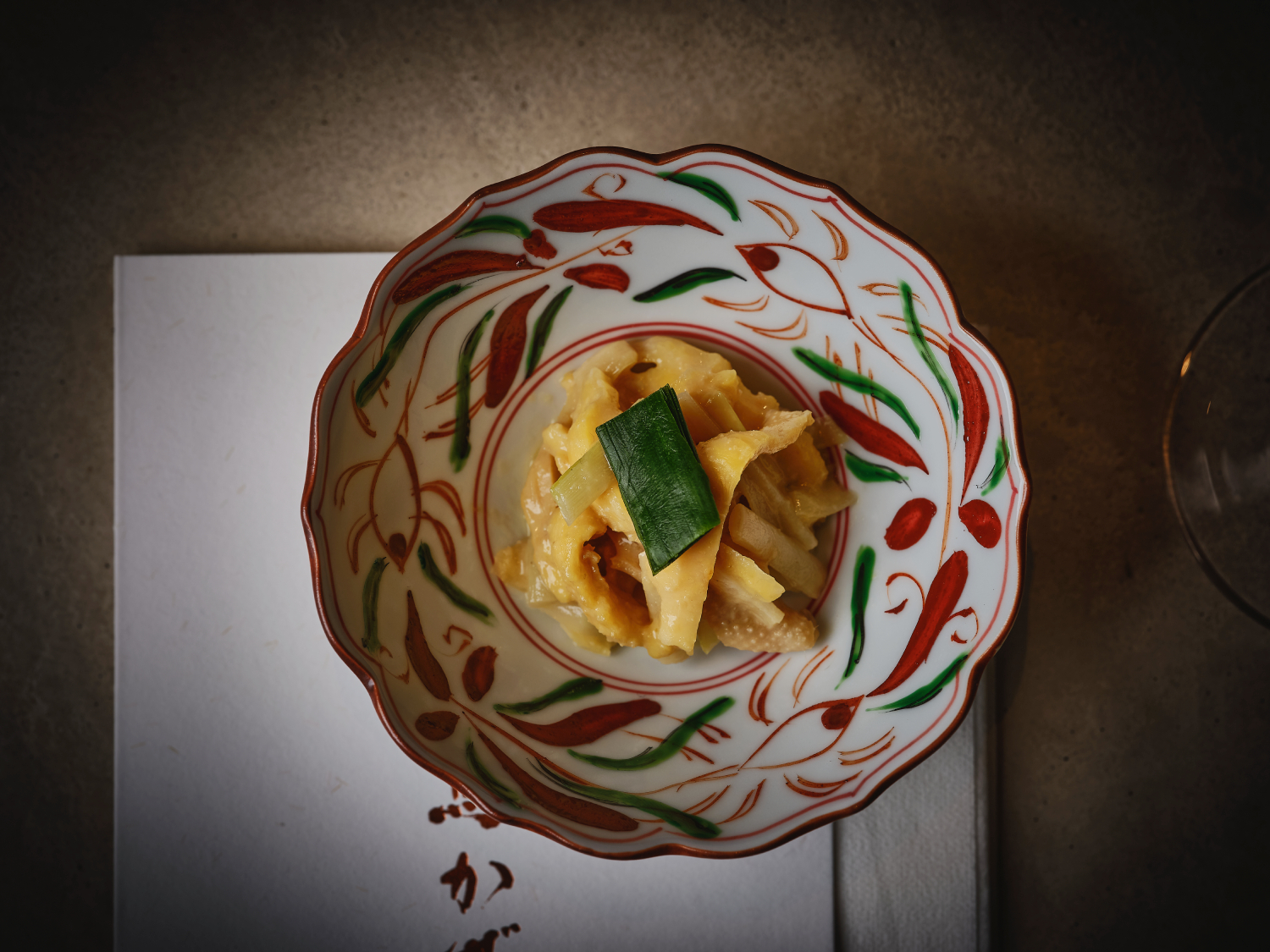 晚餐以「廚師發辦」的形式展開,餐單上令人垂涎的本地著名三黃雞雞肉部位包括雞胸肉、里肌肉、雞頸、雞翼、雞腿、雞胗、雞心、雞肝、雞尾以及著名的 Tsukune 肉丸,每一個部位都經過特別處理,以展現其細膩的口感和風味。