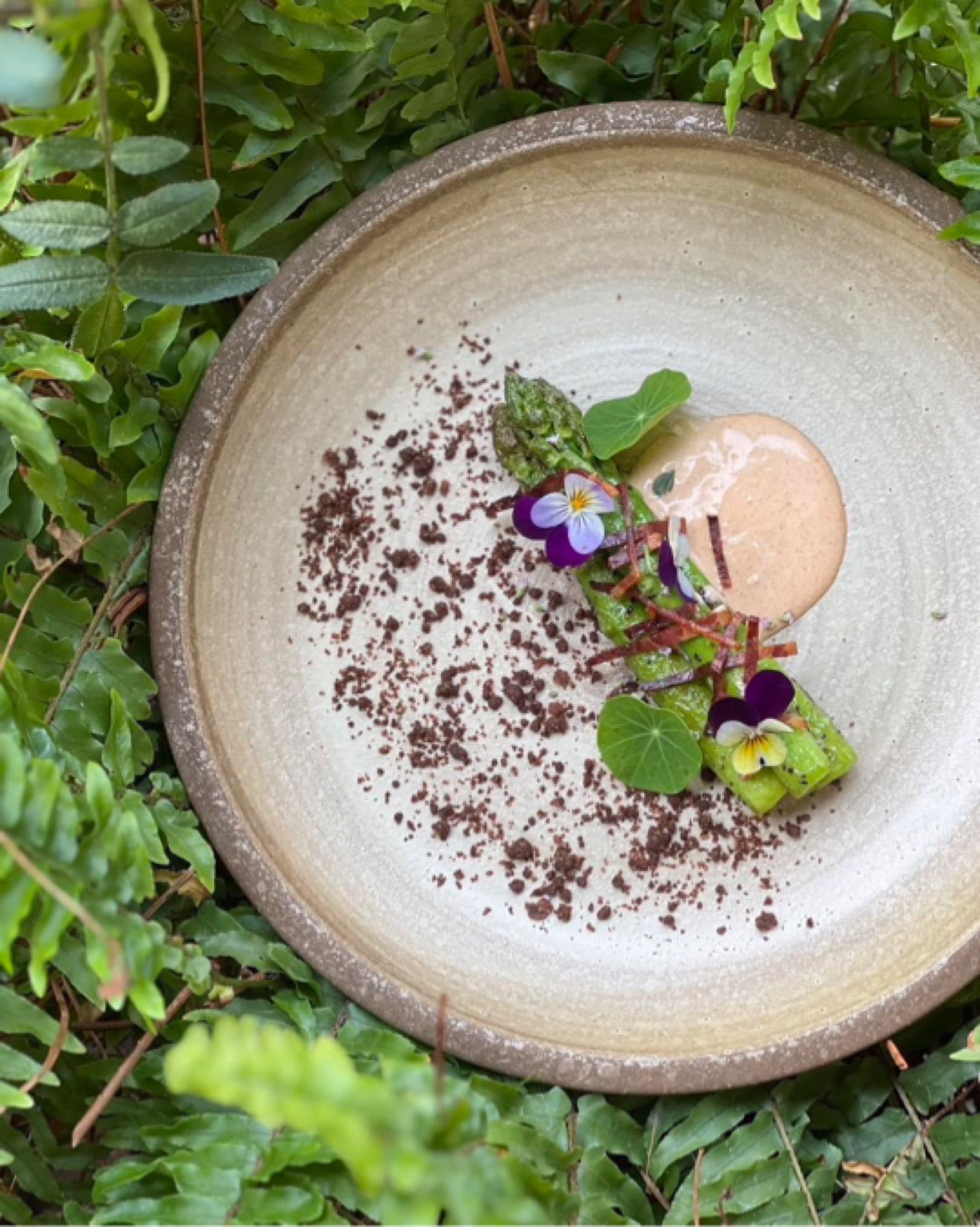 Oct.20kitchenlife 主廚劉家維使用發酵奶油做了兩種醬汁、一道甜點。搭配蘆筍的辣味奶油醬汁,是將鮮奶油與辣椒熬煮濃縮後,加上奶油增加滑順口感。搭配明蝦的蛤蠣番紅花醬汁,一樣在最後放入奶油,另外也以奶油將新鮮明蝦泡到約 7 分熟,讓蝦子擁有外表 Q 彈、內部軟嫩帶脆口的質地,且表面附著著奶油香氣。此外,他也以發酵奶油製作義大利經典甜點 Cannoli 的酥脆外殼。