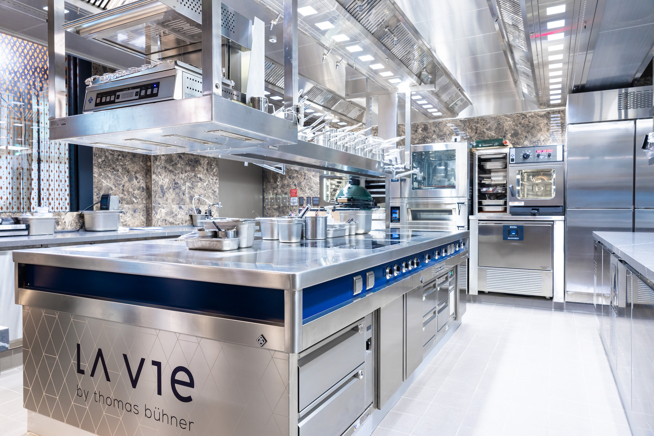 就像把工作上所有阻礙盡可能排除,廚房團隊就能在平滑的軌道上運行得更順暢。德國主廚重視的效率與機能性,在這座量身打造的廚房裡展露無遺。