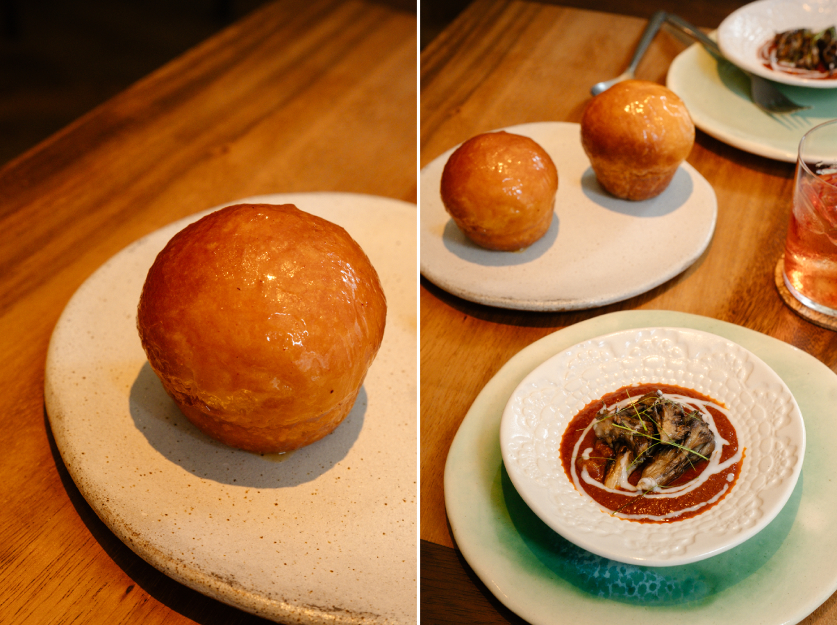 先烘焙再油炸、並以香料蜂蜜奶油上釉的餐前麵包,看似英式的形貌,卻是 John 最喜歡的泰式特質,也是通往下一道辛辣咖哩的過門。