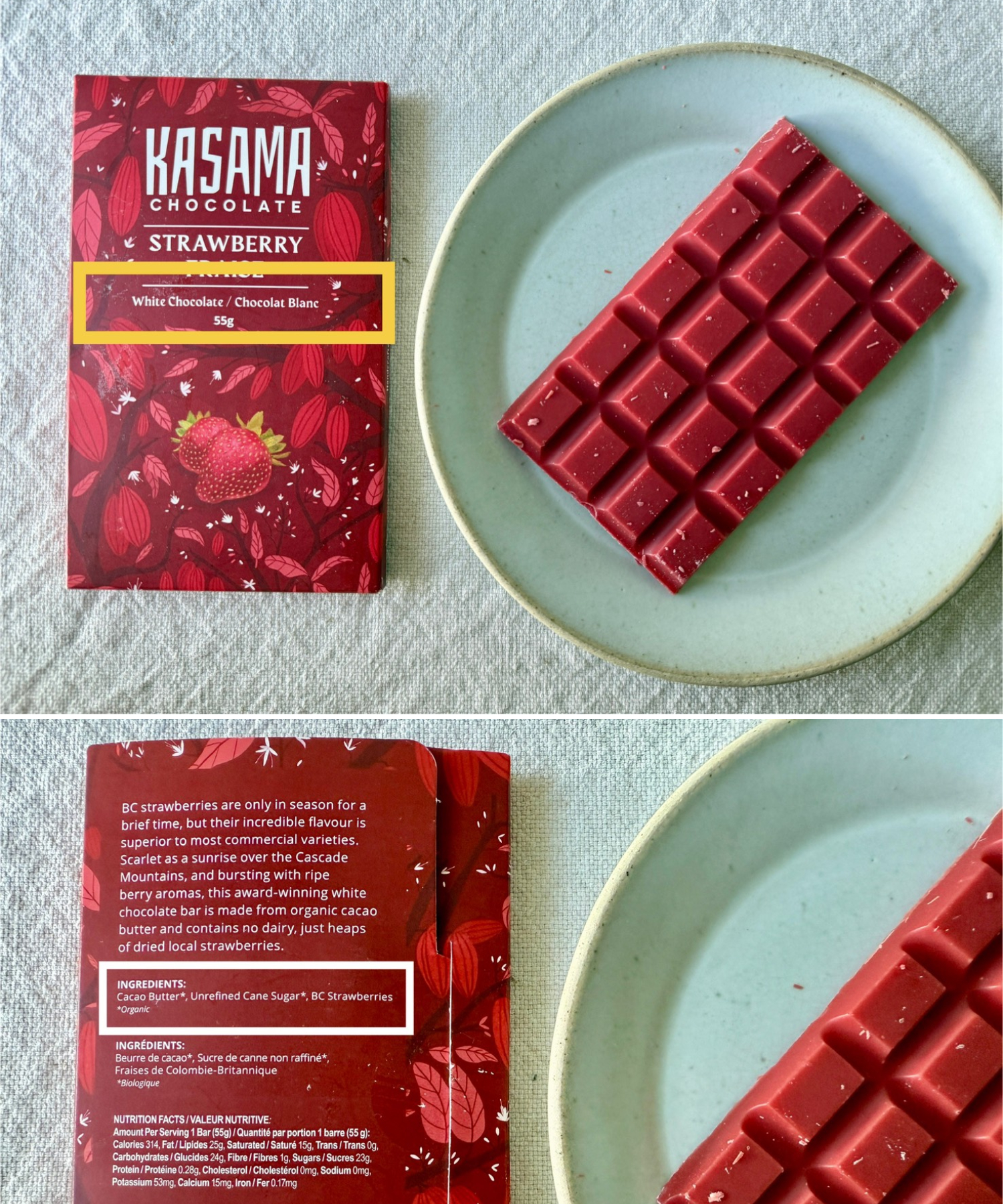 2024 年度白巧克力大獎由加拿大品牌 KASAMA 的草莓白巧克力奪下,如同其包裝所示,無使用乳成分。