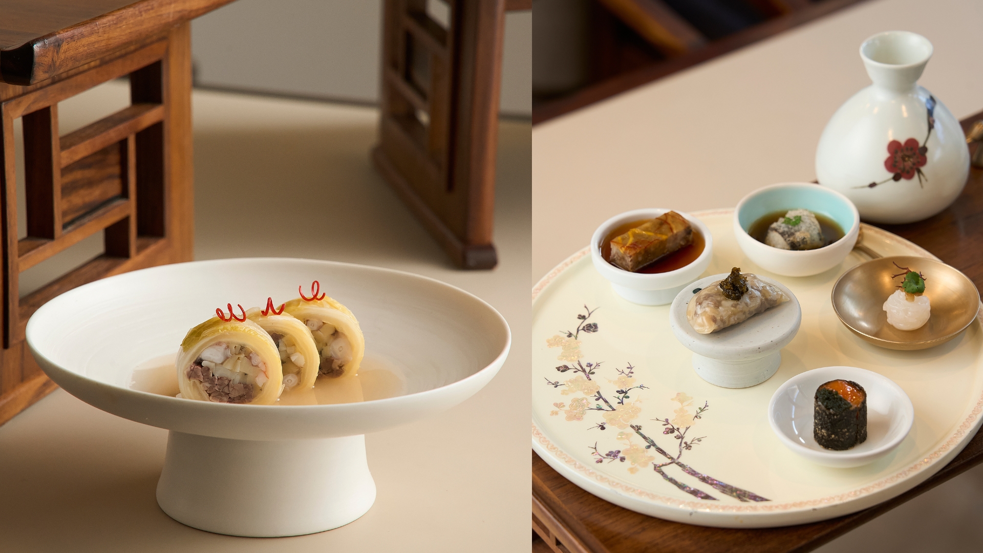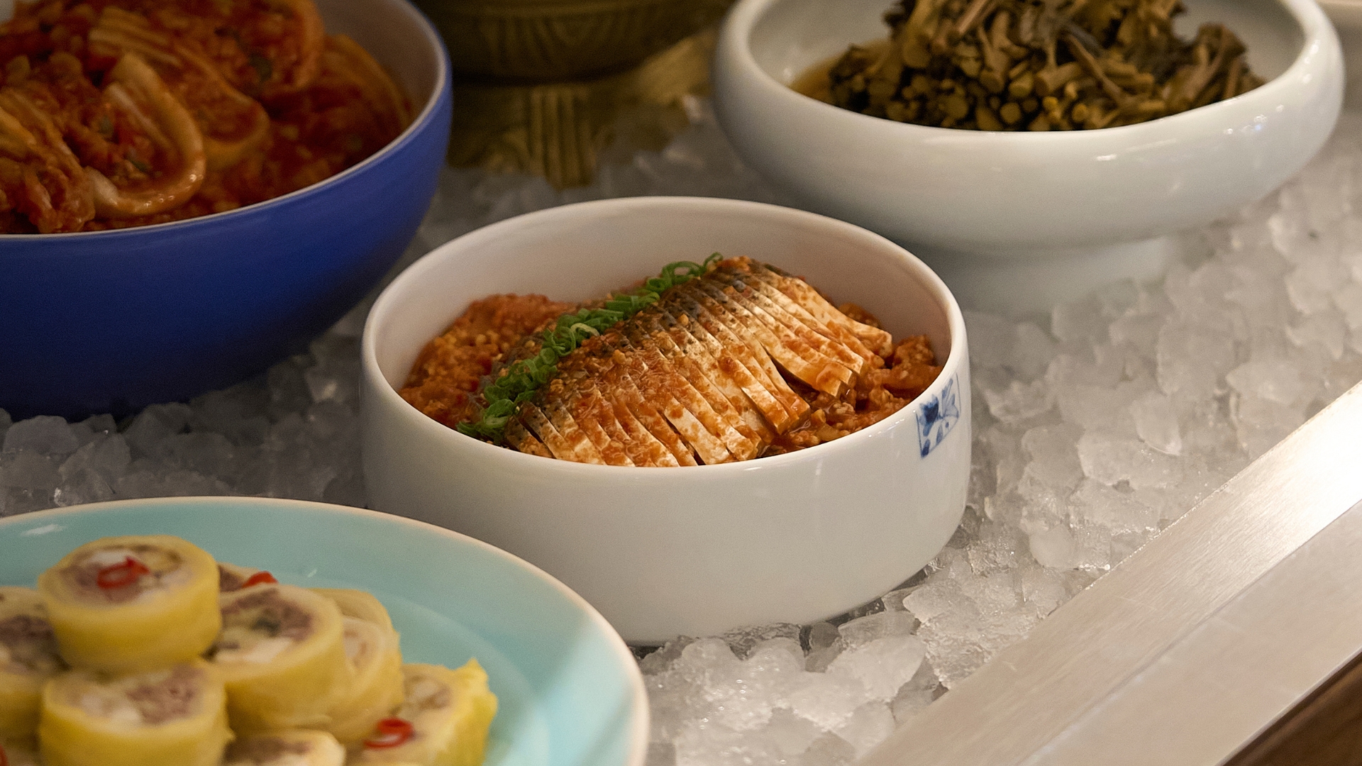 (좌) 한 해 동안 숙성한 간장에 다시 메주를 더하는 ‘겹장’에서 출발한 김치. 권우중 셰프의 해석을 거쳐 시간의 층을 쌓는 ‘겹김치’로 완성되었다. (우) 소반 위에 놓인 한 사람의 식사. 권숙수의 주안상은 산미와 육향, 발효의 잔향이 겹치면서 식사의 첫 장을 연다.