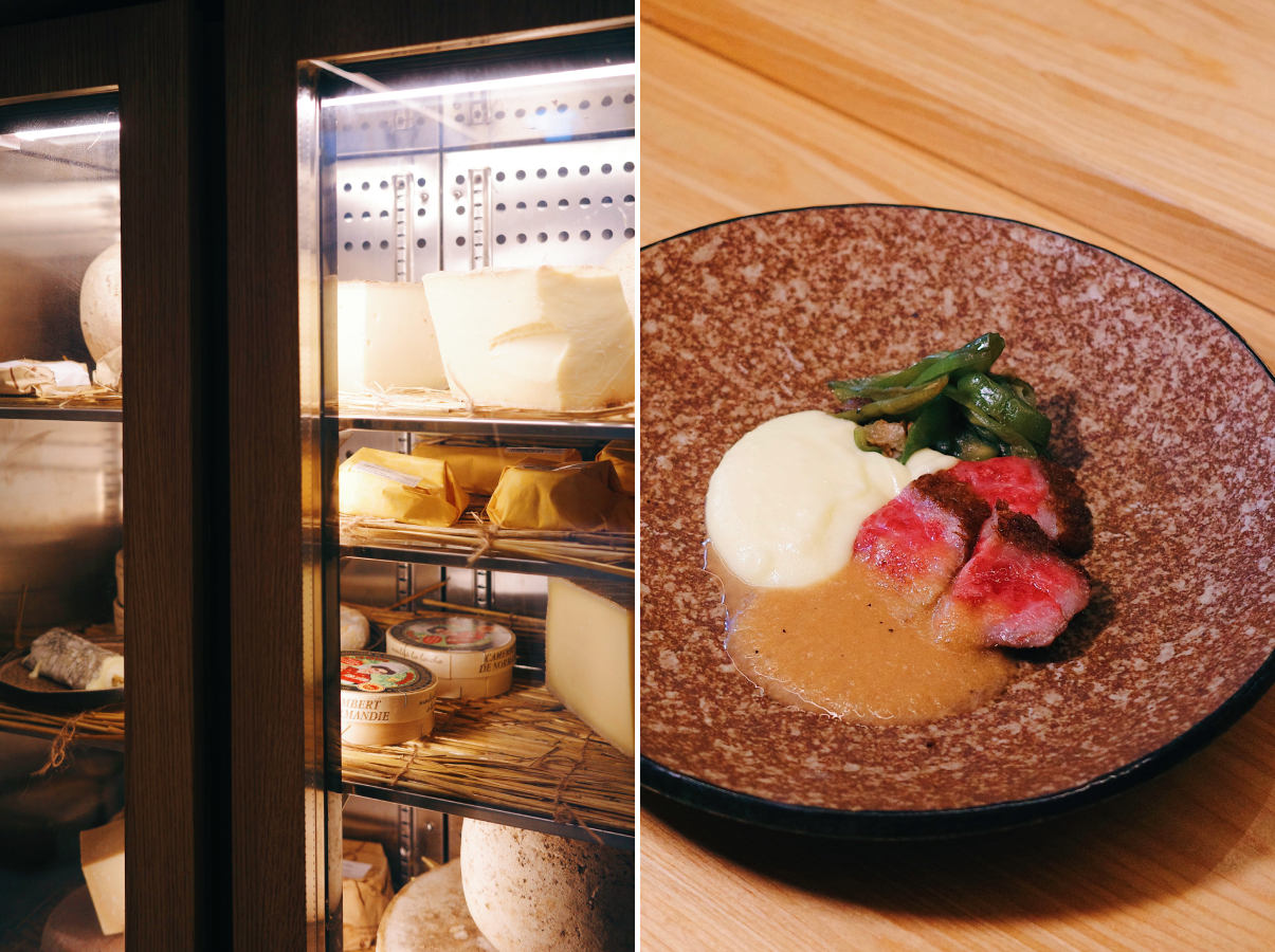 Jeremy 刻意從法國進口未熟成完全的起司及乳源,在 ROUCOU 專屬的起司窖繼續發展風味,讓起司在港島生成獨一無二的風味特性。在主菜和牛料理中,日籍主廚石橋至人選擇讓起司擔任最佳陪襯,法國經典的傳統洗皮乳酪代表 Crayeux de Roncq 與馬鈴薯泥各半混合,這是令每一個法國人共鳴的舒適、家常的風味輪廓。