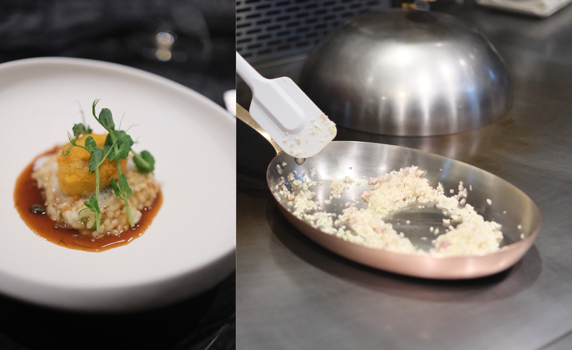 即便身為熟練的法餐大廚,來到鐵板燒主題餐廳,對 David 來說還是頭一遭。他敏銳分享鐵板燒餐廳跟法國料理餐廳的異同:鐵板料理屬於「Direct cooking」,廚師與食材「直接」面對客人,因此對於新鮮程度和整潔,有很高的要求。同樣地,認真的法國料理廚房也擁有這些特質,因此他認為在鐵板料理的廚房做出美味法國料理是完全沒問題的。