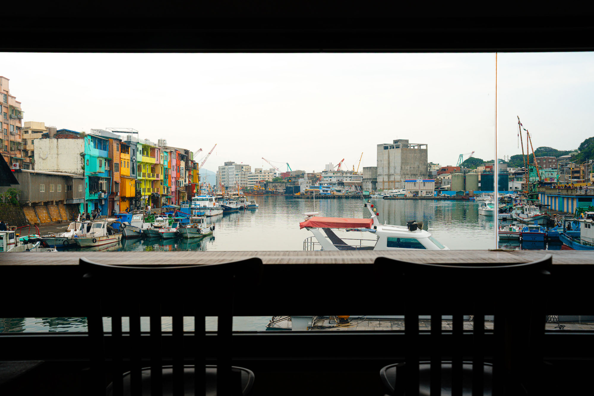 從嶼我 2 樓望出去的正濱漁港風光,可見一旁景點彩色屋。