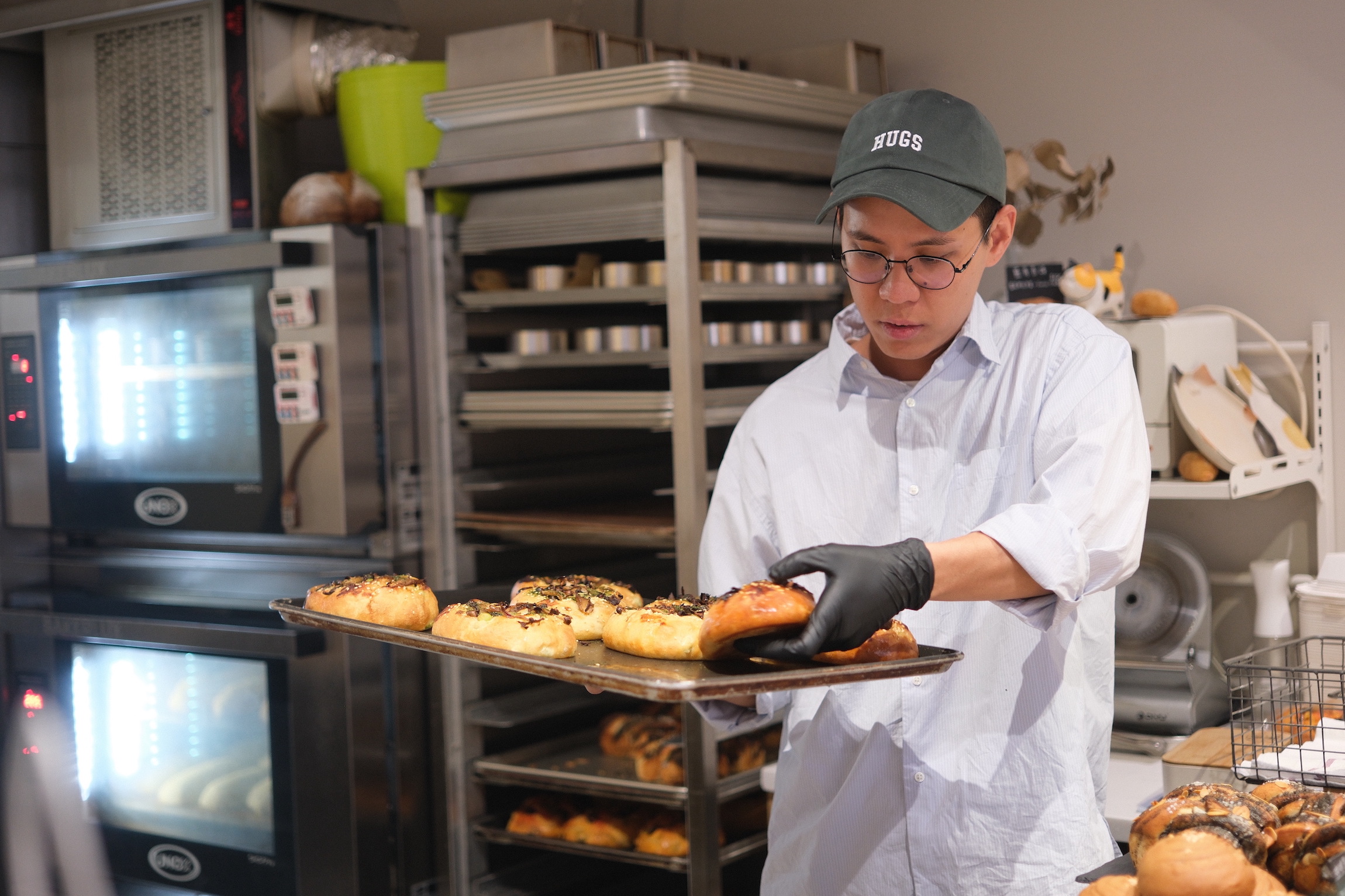 體質跟心之所向背反,他著實傷腦筋了一陣子。因為到了後期,症狀越來越嚴重,他認知到勉強身體也非永續職涯之道,於是從飲食開始調整。他發現戒除牛奶後,過敏獲得改善。既然不可能完全不用麵粉,他決定開一家別人沒開過的,主打素食烘焙的麵包店。