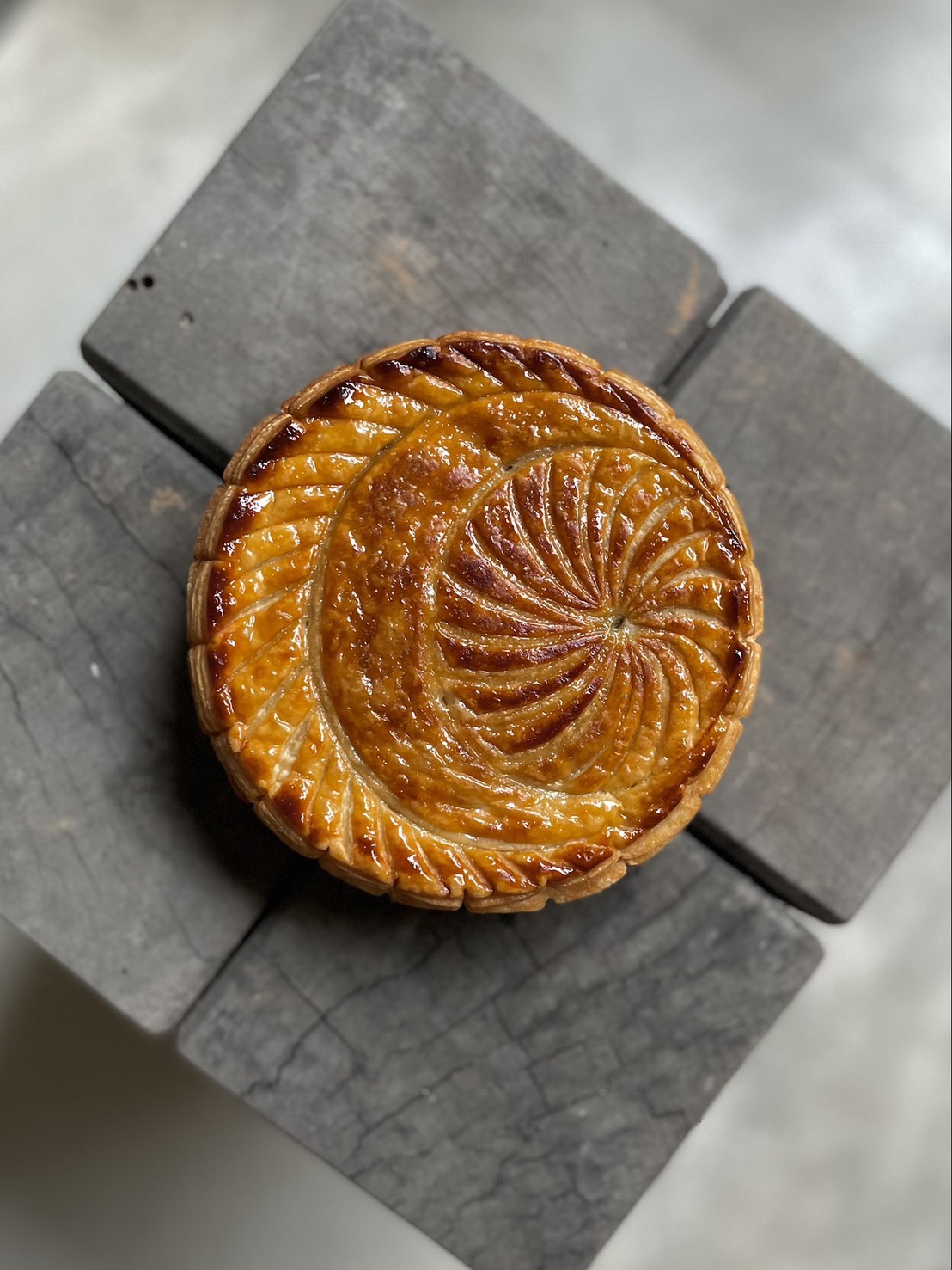 王子健在年節時分推出國王派產品,內餡是茉莉綠茶的杏仁餡搭配日本柚子,帶有花系清香。圖片提供:小麥過敏烘焙工作室
