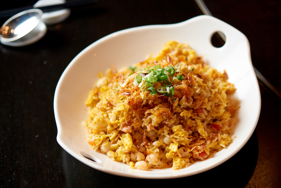 「雅閣炒飯」用了台灣特產烏魚子與櫻花蝦,還奢侈地加入龍蝦與元貝。烏魚子和櫻花蝦是香港少用且昂貴的食材,謝文來到台灣後,將這些在地特色加入炒飯中,鑊氣十足、飯粒分明,每一口都嚐得到不同食材帶出的豐富滋味。