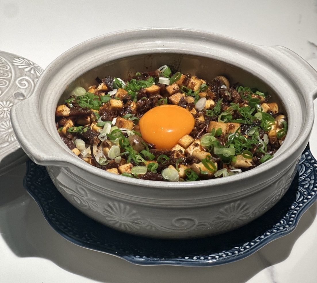 Fancy Tofu 主理人黃湘絨認為辣醬帶點客家風味,口感保留咀嚼感,越嚼越香,鮮鹹又帶煙燻厚度。他將辣醬拌入臭豆腐,加入水梨條、洋蔥絲和泡菜,就變成一道在家也能快速招待朋友的下酒料理。她建議愛喝酒的人可以把這道「飛魚辣醬臭豆腐拌麵」常備冰箱當下酒菜,拌入麵條和蔬菜,還能變成宵夜經典。