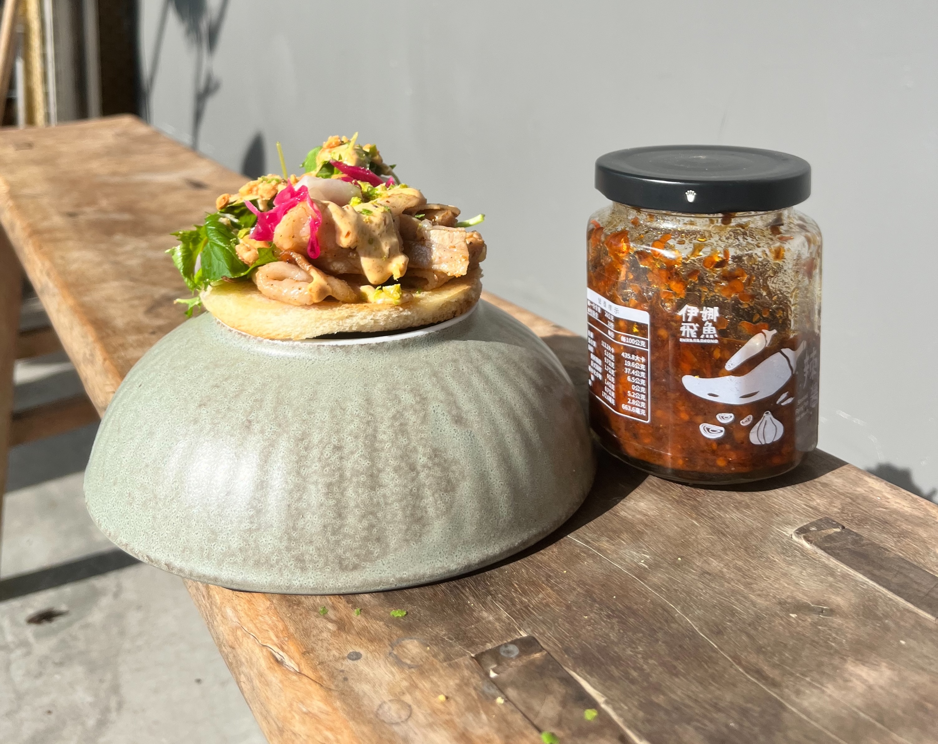 厝边 n.b.r 的料理長呂政緯表示:「醬汁是料理的靈魂。」當肉片辣醬一同拌炒,油脂的甘甜讓辣醬的辛辣更柔和,煙燻的深度則讓肉香更加立體,並增加「辣豬肉薄餅」增添層次。「這款辣醬很直覺,不需繁複步驟,就能讓日常料理升級。」