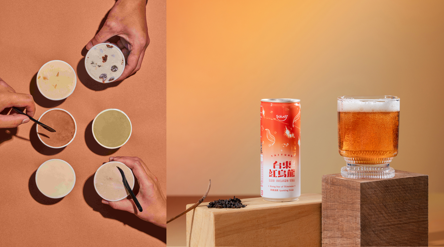 紅烏龍奶蓋冰淇淋(左)與台東紅烏龍氣泡飲(右),都是台東紅烏龍跨界合作、向外傳播的新產品。