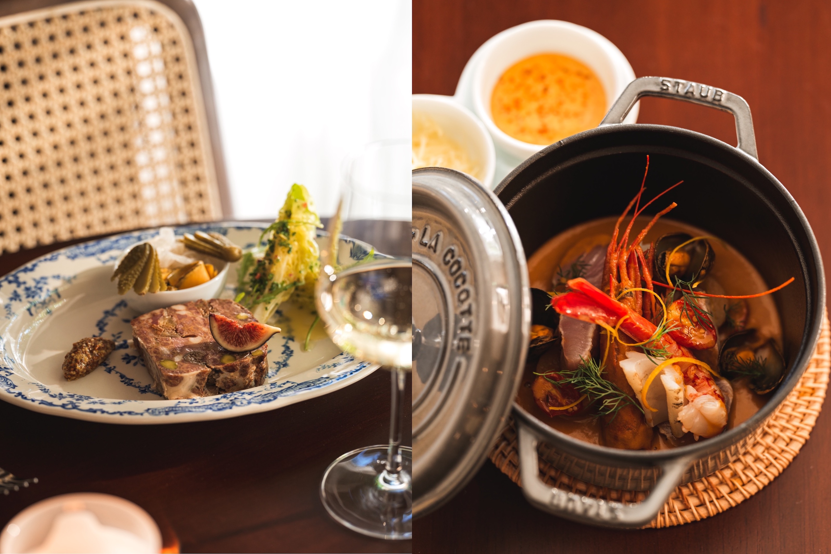 在 Chaud Doux 菜單裡,你能看到「鄉村肉派」(左)與「馬賽魚湯」(右)等經典傳統菜色。