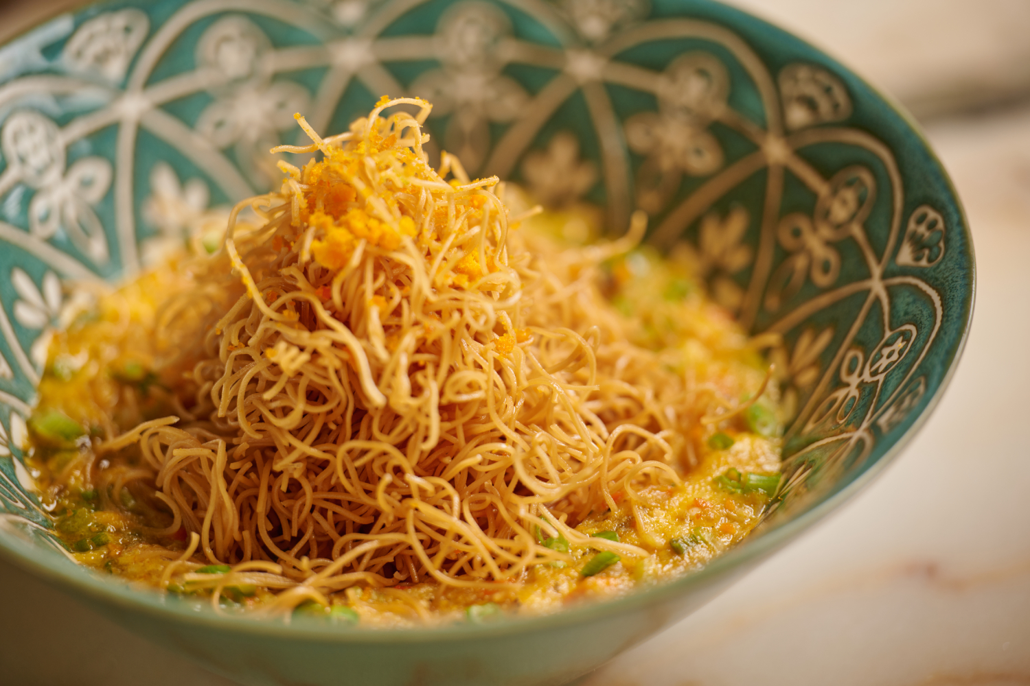 廈門風味潤餅配蟹粉:福建家常菜式,加入奢華濃郁的蟹黃,為傳統潤餅添上一分矜貴滋味。