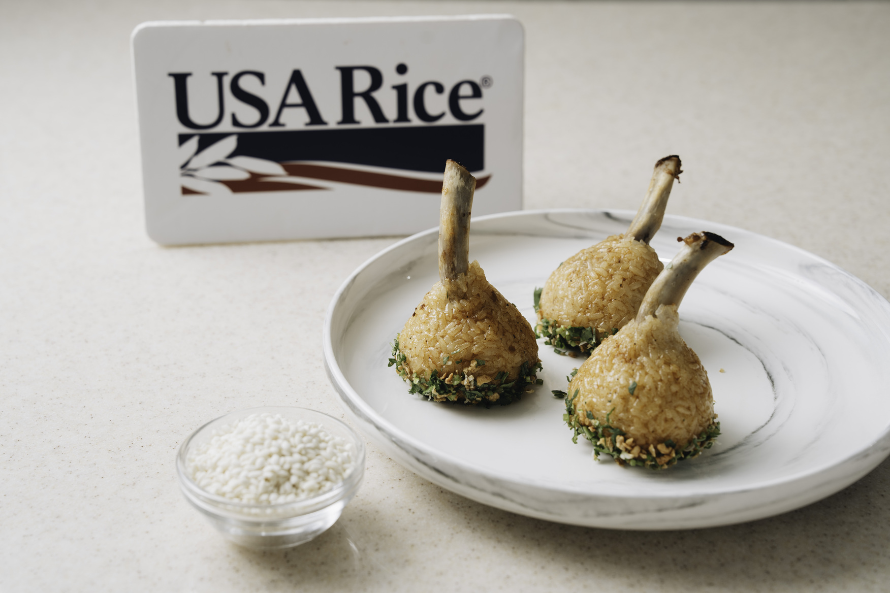 而另一道以「加州圓糯米」製作的 BBQ 烤豬肋排糯米飯糰,則展現出台式料理的包容性,「我希望做出台灣人會想吃,美國人也會喜歡的料理。」美國加州圓糯米在料理中扮演的是承載風味的角色,美國加州圓糯米口感柔軟卻不易塌散,煮熟後的黏性與穩定度,讓飯糰在塑形、包餡與後續加熱過程中仍維持紮實結構,能完整包覆手撕豬肋排與濃縮 BBQ 醬汁,整體吃起來飽滿卻不厚重,展現他對於食材特性的掌握。