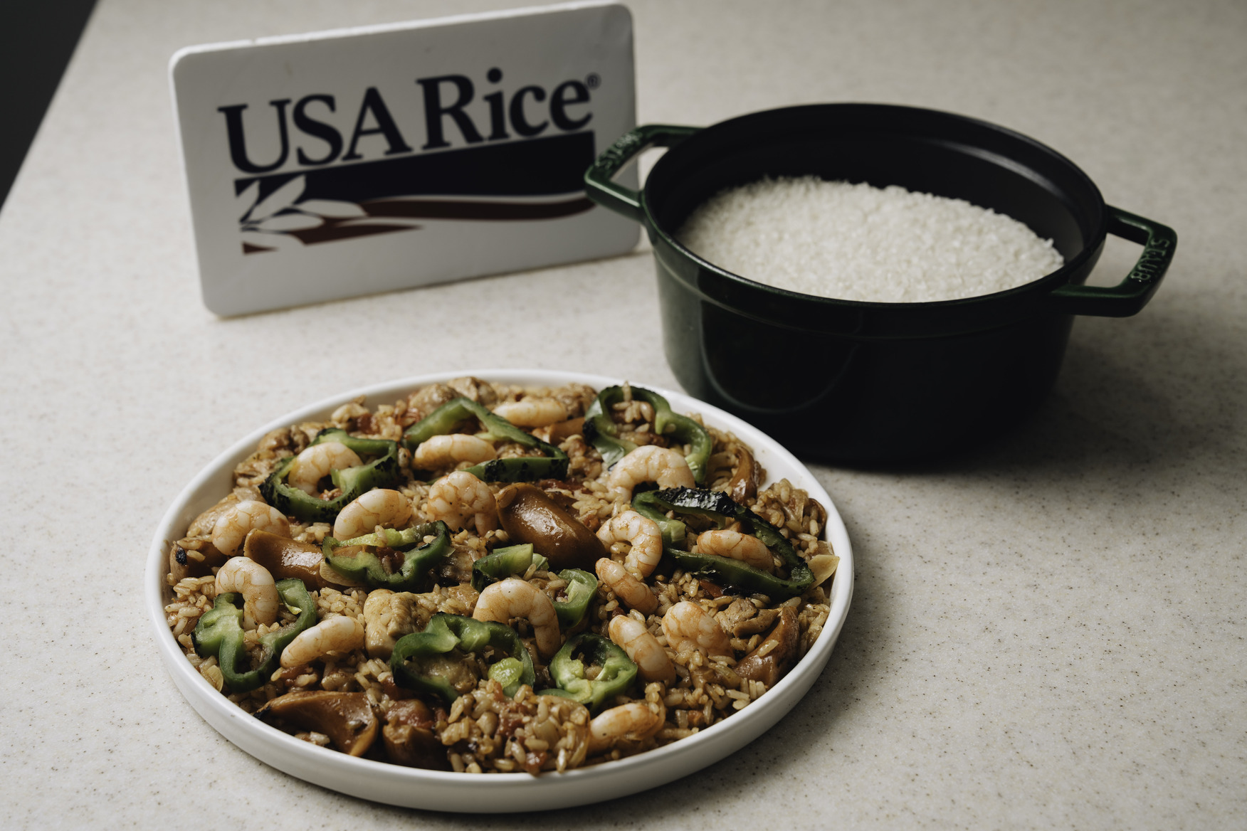 正是這次交流,讓他更深入理解料理背後的文化脈絡,Jambalaya 是「一鍋到底」的料理,與紅燒牛肉麵一樣,需要透過時間堆疊出風味層次,「那種越煮越香、所有味道融合在一起的狀態,其實很台式。」他如此形容。正因為這樣的料理結構,陳佑昇特別看重「美國加州玫瑰米」在長時間燉煮下的表現,他觀察到,美國加州玫瑰米在吸收番茄、高湯與香料後,仍能保有清楚的顆粒感,不會糊化或失去口感,使整道料理在濃郁之中依然保有絕佳層次。