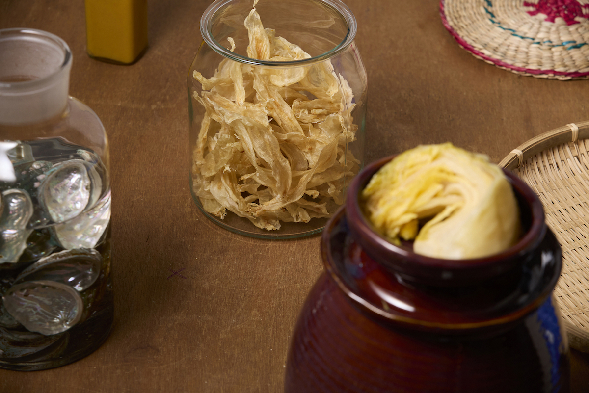 使用花膠入菜時,李易晏選用養殖的台灣佐羅魚花膠,「蝦仁飯」也使用生態養殖的胭脂蝦,以友善環境的食材來做有永續精神的料理。圖片提供:好嶼 HOSU