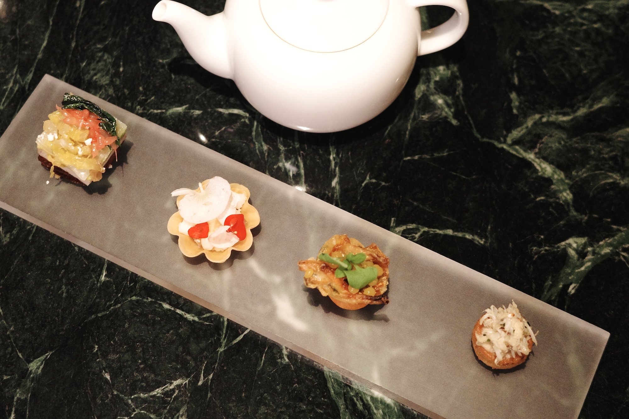 最鮮明的展現即是開場的前菜小點。有別於傳統辦桌會出現的「五福拼盤」,李易晏刻意以台灣五大族群的飲食文化為題,設計 5 款開胃小食。