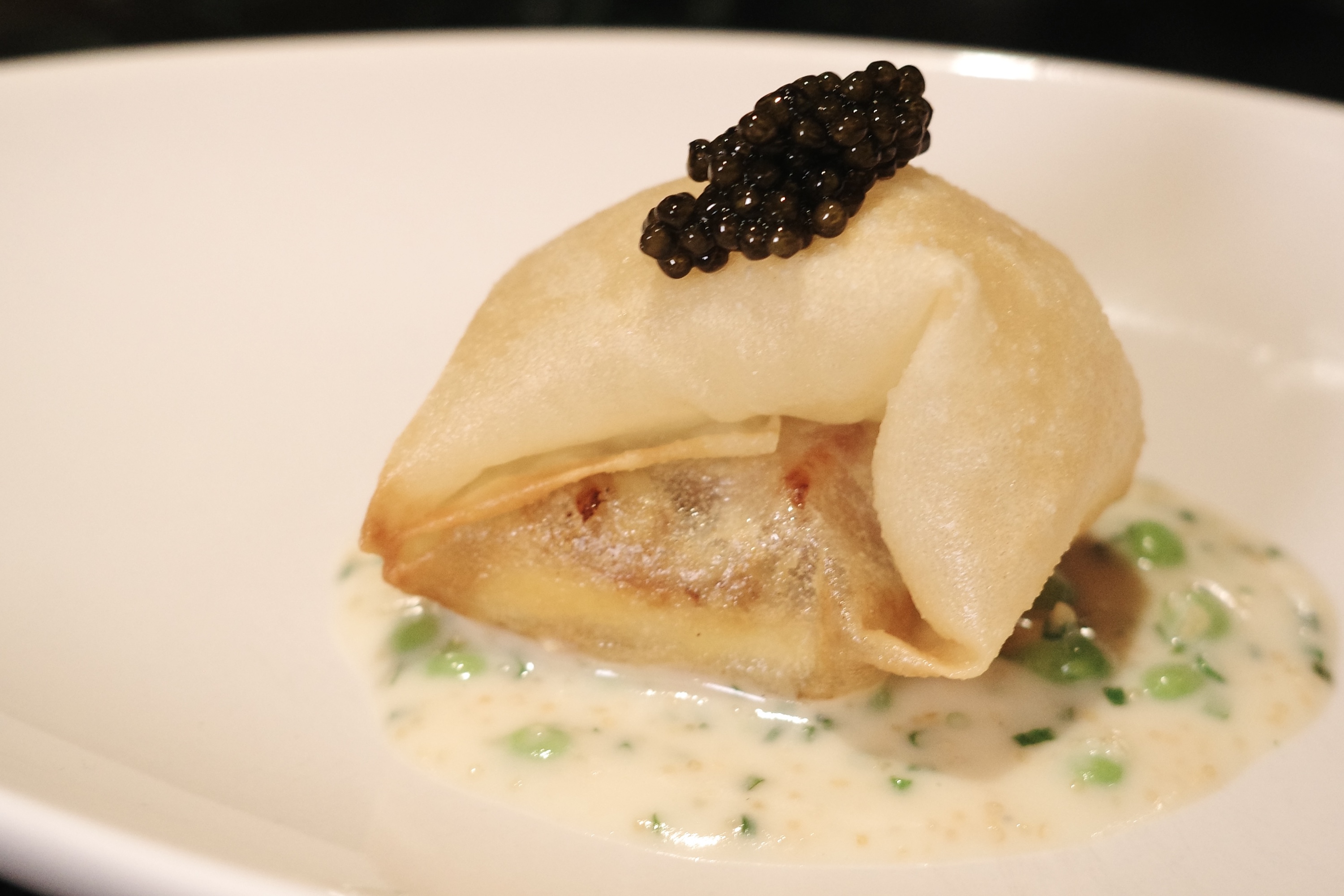 別出心裁的還有致敬閩南族群的「棺材板」,好嶼回溯至這道小吃創辦人許六一在 1940 年代原型配方,非如今常見的雞肉蝦仁版本,而是以雞肝為主角;春捲皮捲裹煙燻鰻魚、吐司與雞肝,酥炸成蓬鬆的空氣春捲,搭配魚骨高湯和白葡萄酒製成的奶醬,呈現日式和風洋食的風貌。