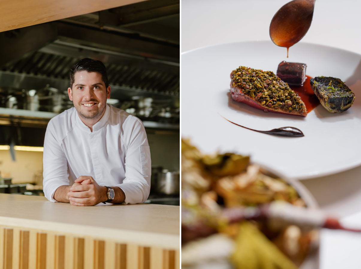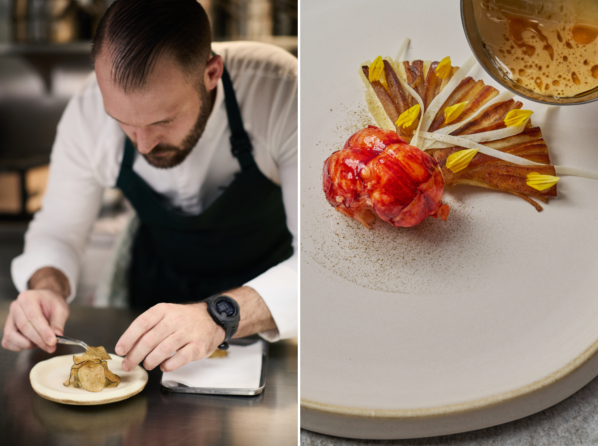 主廚 David Toutain 師承名廚 Alain Passard、Pierre Gagnaire、Bernard Pacaud 和 Marc Veyrat,以其對現代法式料理的獨到見解而享譽國際。他精進技藝,及後於巴黎開創辦同名的米芝蓮二星餐廳。2025 年 1 月,他將其烹飪理念拓展至泰國,在曼谷麗思卡爾頓酒店開設了 Duet by David Toutain,將他標誌性的「食物與自然的二元性」探索成為餐廳的核心。